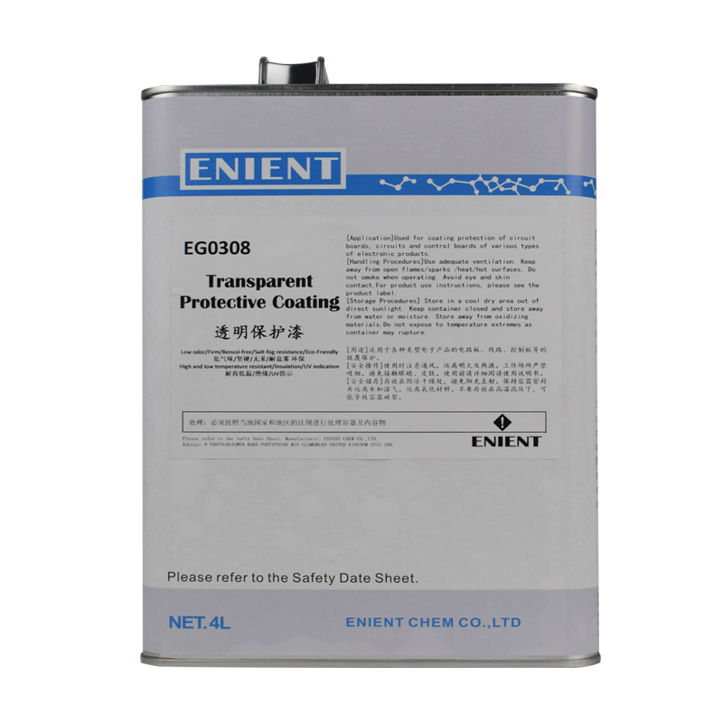 EG0308無(wú)苯線路板三防漆線路板等電子元器件的 披覆保護(hù),絕緣防潮防水等作用。EG0308無(wú)苯線路板三防漆防水、防潮、防塵、絕緣性能,耐冷熱沖擊、耐老化、耐輻射、耐鹽霧、耐腐蝕、耐振動(dòng)、耐電弧,低氣味 采用無(wú)苯配方 符合VOC要求  不含有害物質(zhì),符合SGS,符合VOC新國(guó)標(biāo)EG0308無(wú)苯線路板三防漆應(yīng)用于:1.戶外監(jiān)控系統(tǒng)控制單元(監(jiān)控?cái)z像頭)2.醫(yī)療檢測(cè)儀器控制單元(B超儀)3.戶外運(yùn)動(dòng)電子控制系統(tǒng)(指南針等) 4.戶外廣告系統(tǒng)控制單元(廣告電子屏) 5.戶外民用設(shè)備控制單元(無(wú)人機(jī))6.交通指揮系統(tǒng)控制單元(交通指示燈)EG0308無(wú)苯線路板三防漆具有優(yōu)異的防水、防潮、防塵、絕緣性能,同時(shí)耐冷熱沖擊、耐老化、耐輻射、耐鹽霧、耐腐蝕、耐振動(dòng)、耐電弧,柔韌性、附著力等性能良好,帶熒光指示,可檢查噴涂是否到位。ENIENT化工股份有限公司的歷史開(kāi)始于1956年,其前身是“約瑟夫&約書亞化學(xué)公司”,并于1978年正式創(chuàng)建。