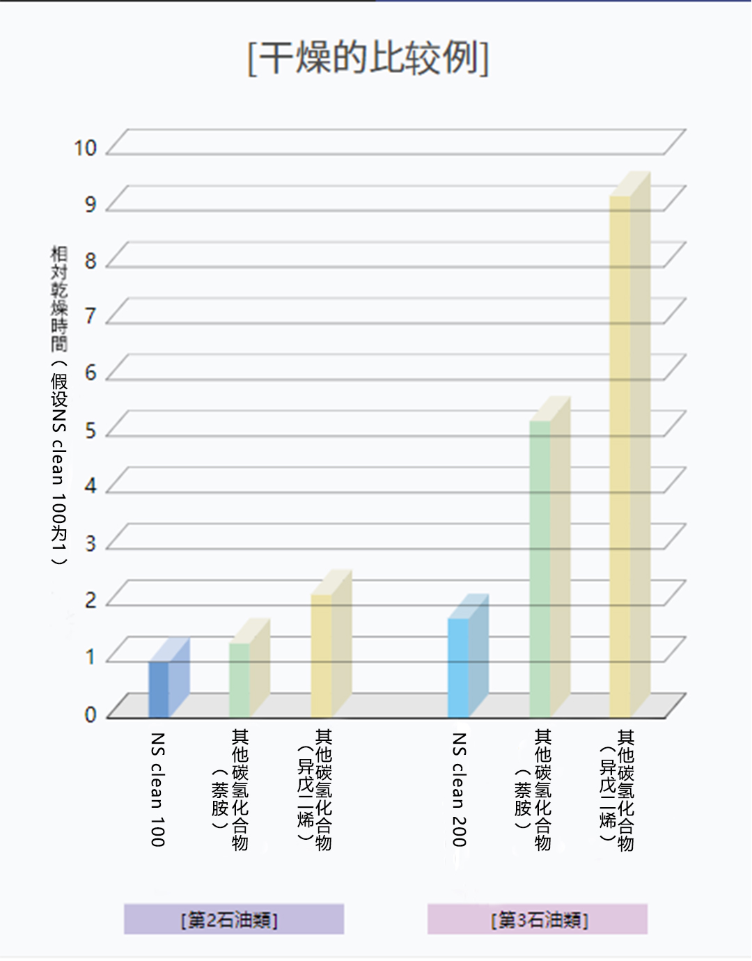 eneos清洗劑與各種清洗劑的清洗性比較; eneos清洗劑具有窄的沸點(diǎn)范圍,并且不包含難以干燥的重質(zhì)組分,因此它具有優(yōu)異的干燥性。eneos清洗劑是一種清洗劑具有高分離效率的清洗劑