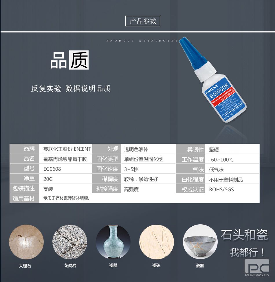 ENIENT EG0608快干膠石材瓷磚修補(bǔ)填縫3~15秒超快干高強(qiáng)度透明20G