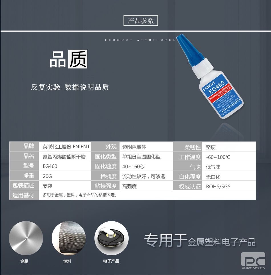ENIENT EG460快干膠金屬塑料電子產(chǎn)品粘接40~60秒固化無(wú)白化透明20G