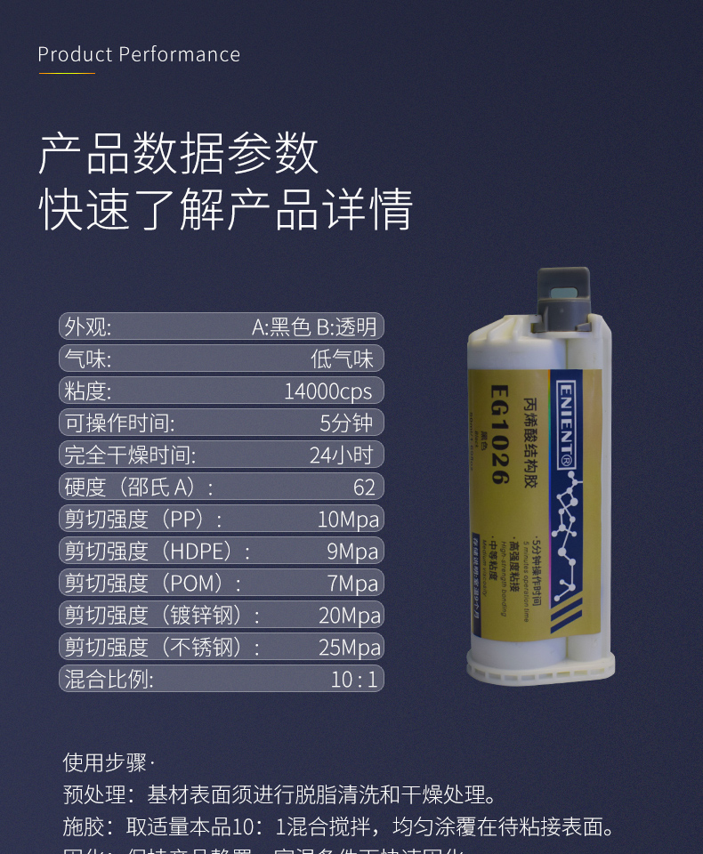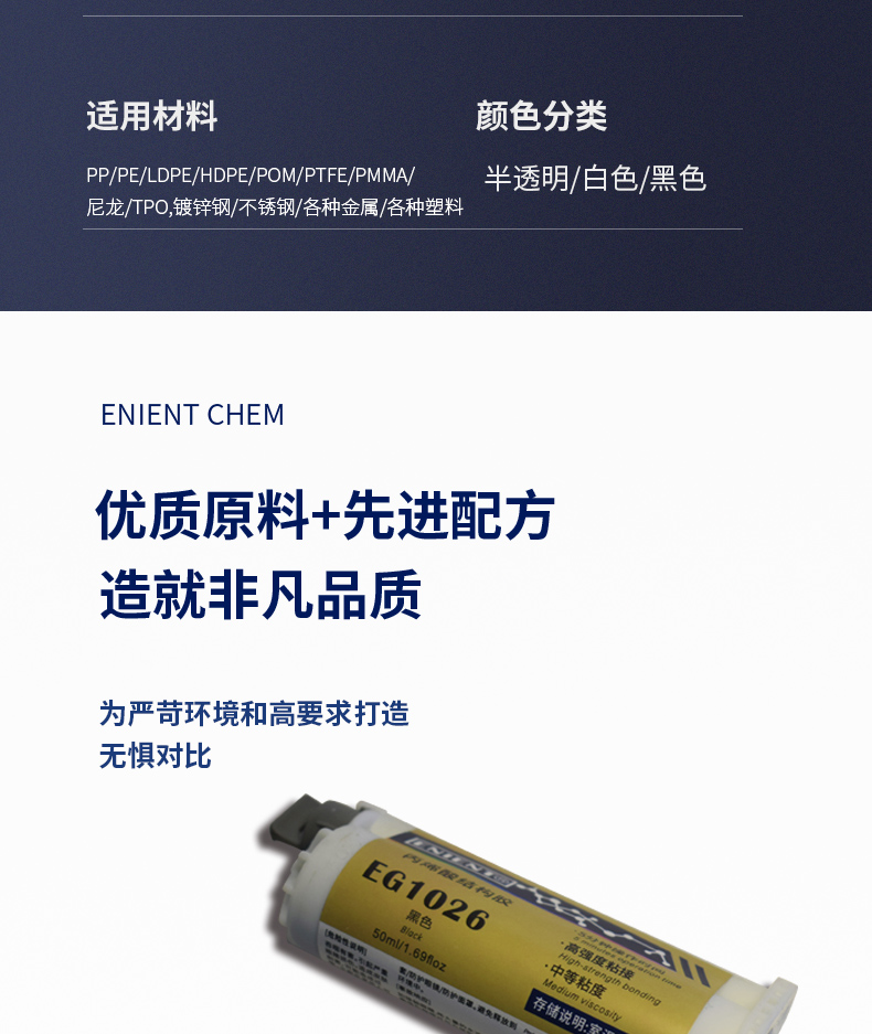 ENIENT EG1026PP結(jié)構(gòu)膠HDPE結(jié)構(gòu)膠雙組分黑色高強(qiáng)度破材級(jí)別